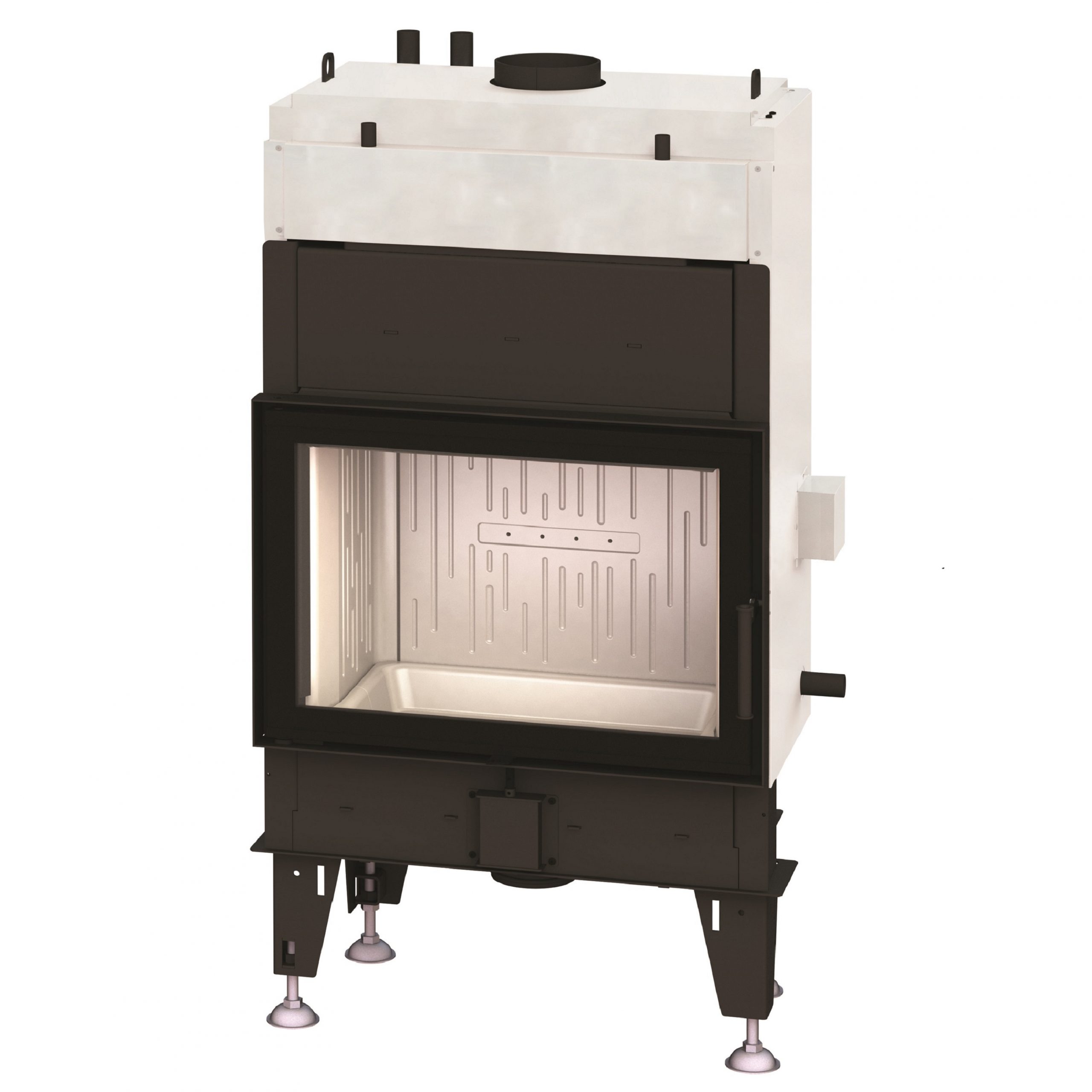 Ascherost: Verison 2024 ohne Ascherost, der Brennraumboden ist komplett mit Speichersteinen ausgelegt, dadurch bessere Verbrennung.