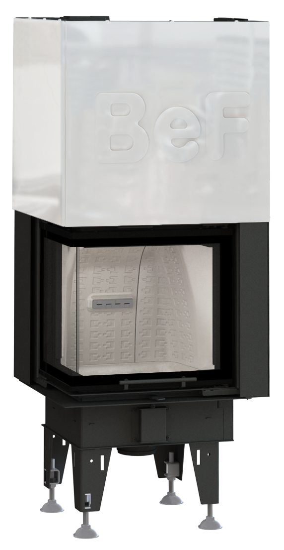 Therm: Klassische Reihe von BeF-Kaminen, die sich auszeichnet durch neuste innovative Verbrennungstechnik und schlichten modernen Design. Alle Therm Kamine sind ausgestattet mit den neuen Speichersteinen Carcon 2.0 mit Selbstreinigungseffekt. Der Therm V 6 CL als Eckkamin mit Seitenfenster Links und hochschiebbarer Tür.